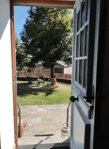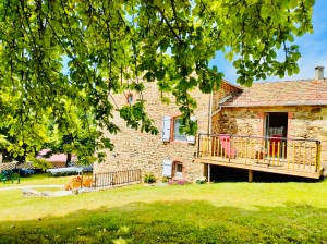 Elle est entourée d’un vaste terrain, ceinte d’une terrasse à l’ombres des tilleuls et de deux autres terrasses orientées au soleil levant, vous pourrez vous détendre sur les chaises longues en profitant de la convivialité des salons de jardin.