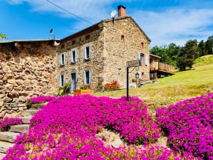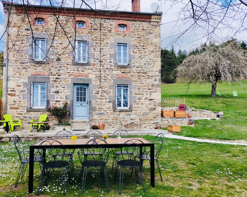 La maison indépendante, à l’architecture traditionnelle, offre une vue lointaine sur les monts du Cantal.